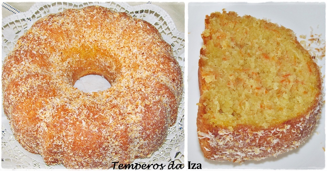 Cobertura: Depois do bolo frio, pincele-o na totalidade com leite condensado. Leve o coco ao forno até ficar com a tonalidade dourada desejada. Salpique todo o bolo com o coco dourado.